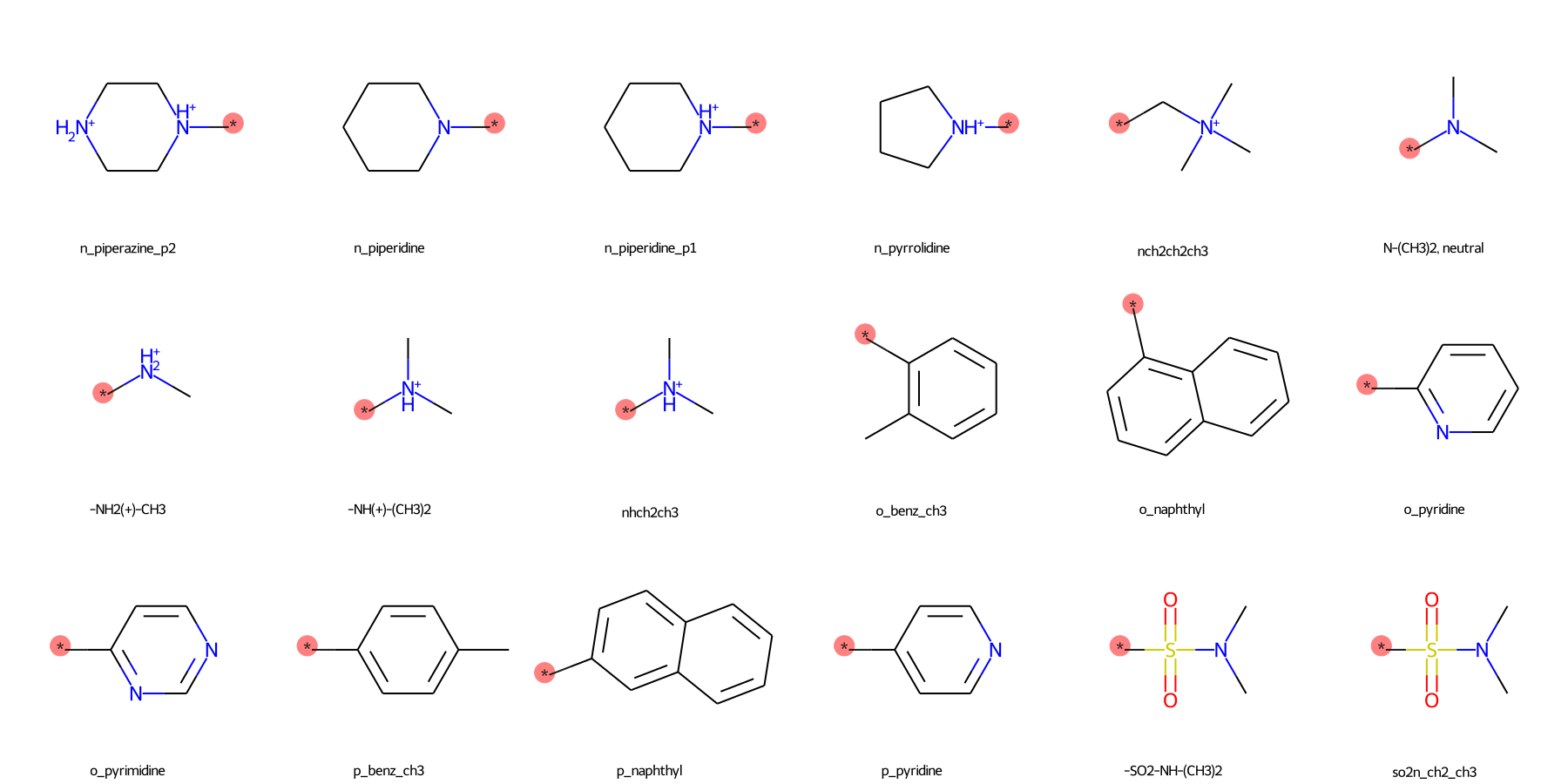 Replace an atom at a defined site on the parent with a fragment (mol2) |
